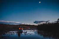 Guided voyageur style canoe tour through the sparkling moonlight waters of the Wye Marsh.