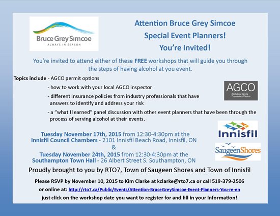 BruceGreySimcoe event planners are invited to attend one of two free AGCO workshops in November.